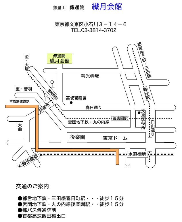 傳通院・繊月会館(せんげつかいかん)・地図・交通案内