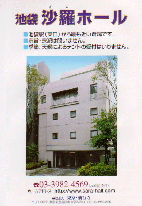 豊島区・斎場・豊島区・寺院会館・池袋 沙羅ホールのご案内