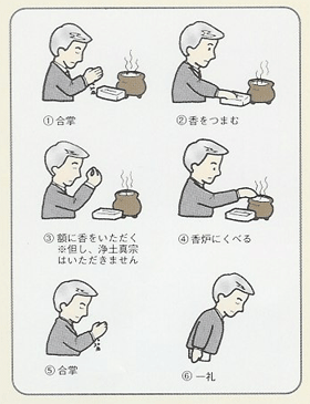 ■ 焼香は本来礼拝にあたって香をたき香気で清める行為です。